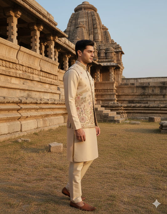 Royal Zari Heritage Waistcoat and Kurta Set | Waak