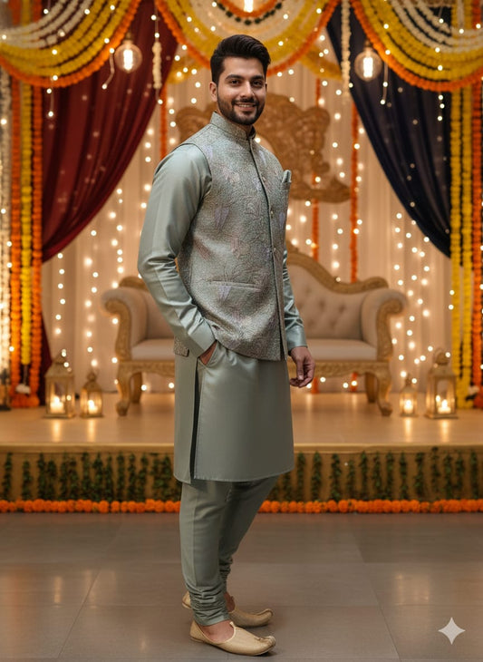 Eshan Zari Ensemble Waistcoat and Kurta Set | Waak
