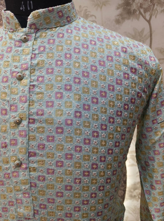 Shubh Muhurat Silk Embroidery Kurta Set | Waak