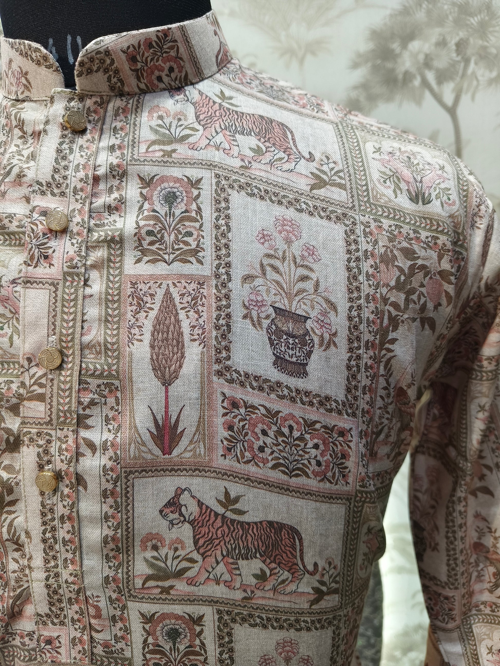 Crafted from handpicked silk, light and luxurious, this kurta brings a one-of-a-kind palette that promises effortless charm
