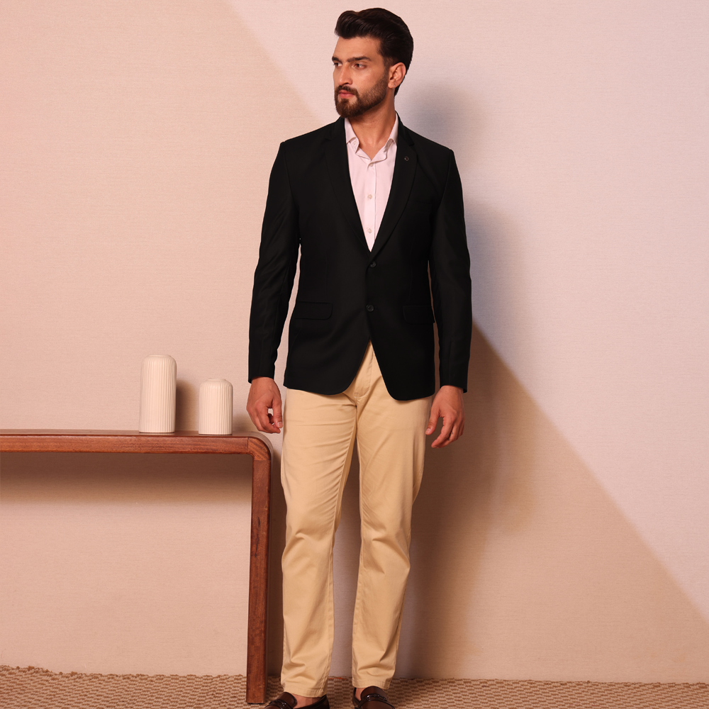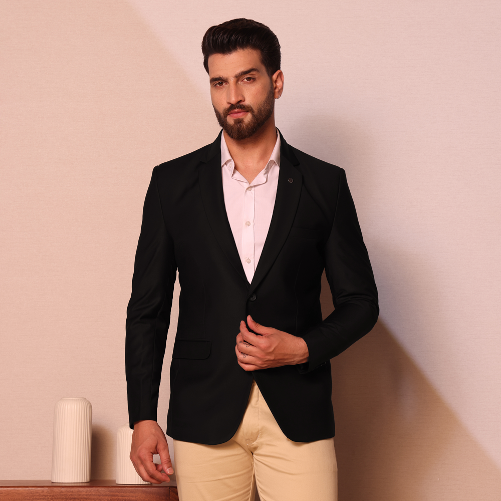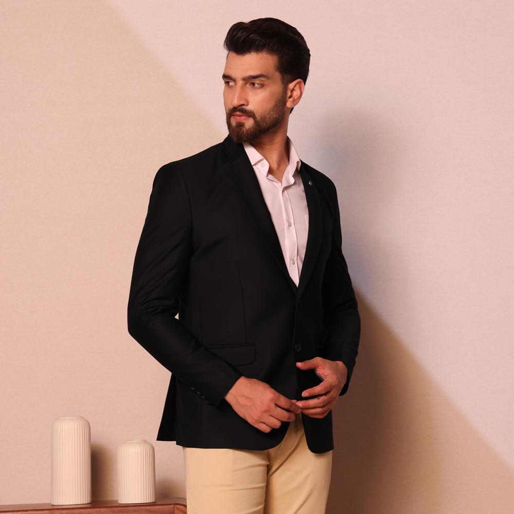 Enhance your wardrobe with our Black T.R. Fabric Blazer. This lightweight blazer offers a smart fit, combining comfort and style effortlessly. The rich Black hue adds a touch of sophistication, making it perfect for both formal and casual occasions. Wear it wherever you want to dress up.