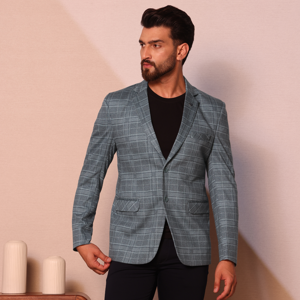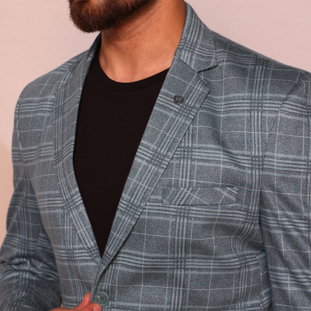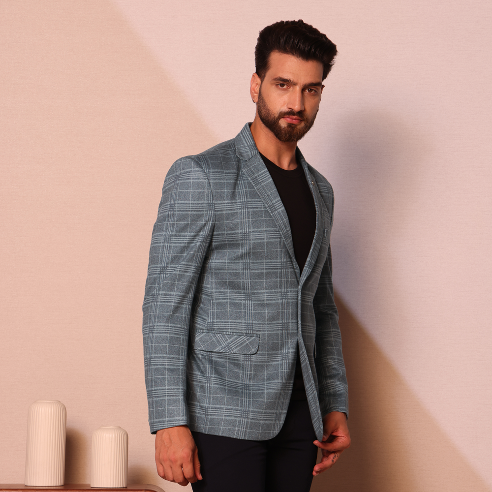 Meet the blazer that plays chess while everyone else is stuck on checkers. With its icy blue plaid and tailored precision, it’s the perfect blend of intellectual mischief and cocktail-hour cool. It doesn’t just walk into rooms—it glides in with a smirk and a well-timed pun. Ideal for boardrooms, bookstores, and breaking hearts.