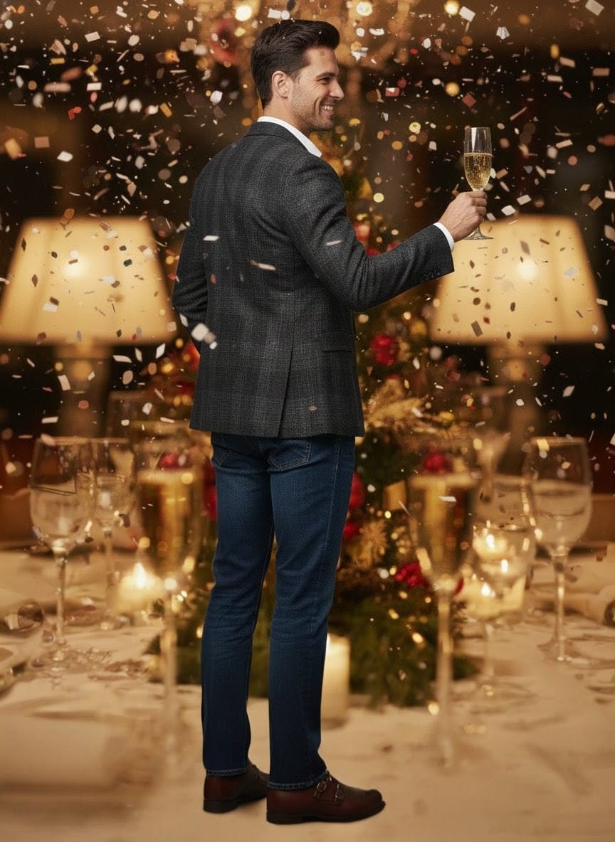 “Black checks with velvet smooth finesse—your understated luxury layer.